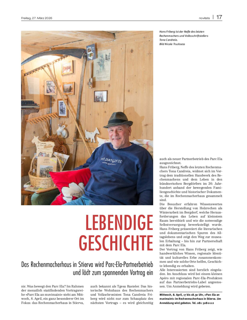Angestossen wird am 8.4.2026 im Rechenmacherhaus, Stierva